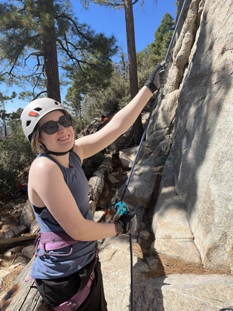 Zoë started climbing in 2023 and quickly fell in love with the way climbing opens up Arizona's landscapes in ways most people never get to experience. While she climbs both indoors and outdoors, she especially loves climbing outside where every route feels like a puzzle you get to solve in your own way and there are always new things to learn. Naturally, Zoë's role at AZWCC is planning the outdoor events. She is especially passionate about creating opportunities for women to step into something new and maybe a little scary, all within a supportive and encouraging community. She loves watching new climbers build confidence, learn new skills, and form friendships. Her love of instruction and learning new things carries into her career as an instructional designer, where she creates training courses that help others grow and build new skills. Outside of climbing, she enjoys cooking, learning languages, pottery, and playing tennis.